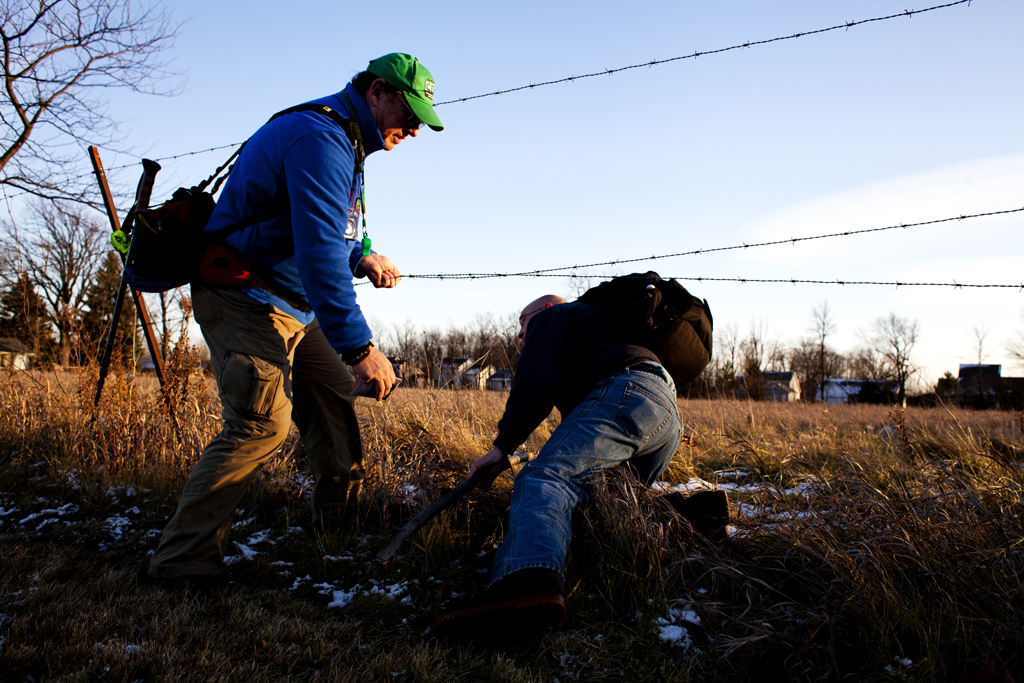 Early morning on Friday, Nov. 23 a 67-year-old man diagnosed with early onset dementia wandered away from his home in Saginaw Township. When he still hadn't been located by Tuesday, officials called in search and rescue volunteers from all over the state to expand the search zone. My colleague and I went out with a search team to document the ongoing process. Each group (and there were many volunteers along with police and fire crews) had a grid they would walk and scour for any trace.